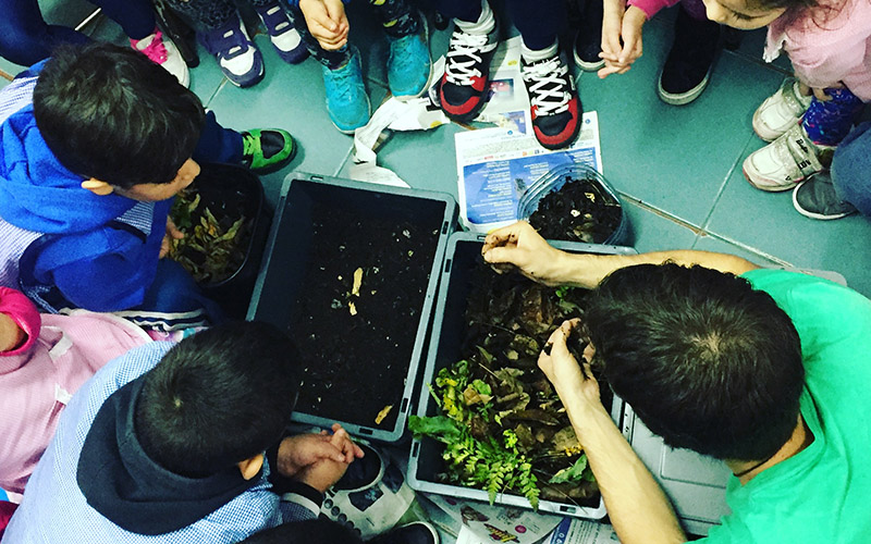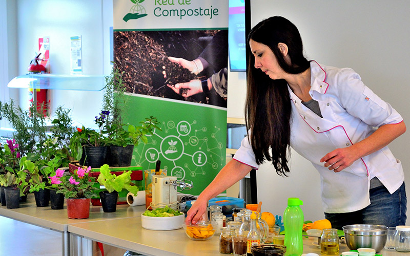 Enseñamos cómo los desechos alimenticios generados en la cocina, pueden transformarse en abono (compost), que luego podrá ser usado para producir alimentos (huerta).